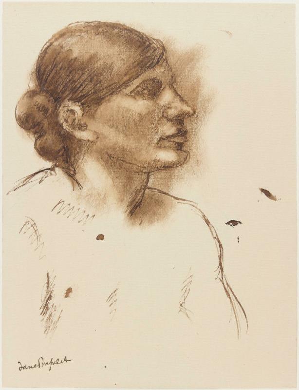 Femme à la chemise relevée de profil