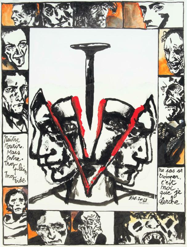 | Techniques | Encre, acrylique, gouache et collages sur papier |