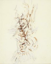 Painted after the death of his life partner, Unknown Journey vibrates with a multitude of tangled signs which lend imprecise dimensions to the work and invite the viewer on a spiritual journey. Definitively abstract since 1945, Mark Tobey was seeking "new horizons through meditation and contemplation". His solitary "path" is "a zigzag into and out of old civilisations". ln the 1920s he discovered Baha’ism, a religious syncretism from Iran. Throughout his life it would provide a response to his need for universality.