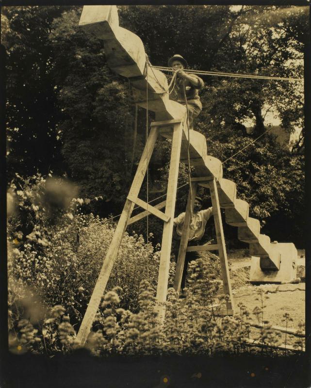 Brancusi érigeant la Colonne sans fin à Voulangis