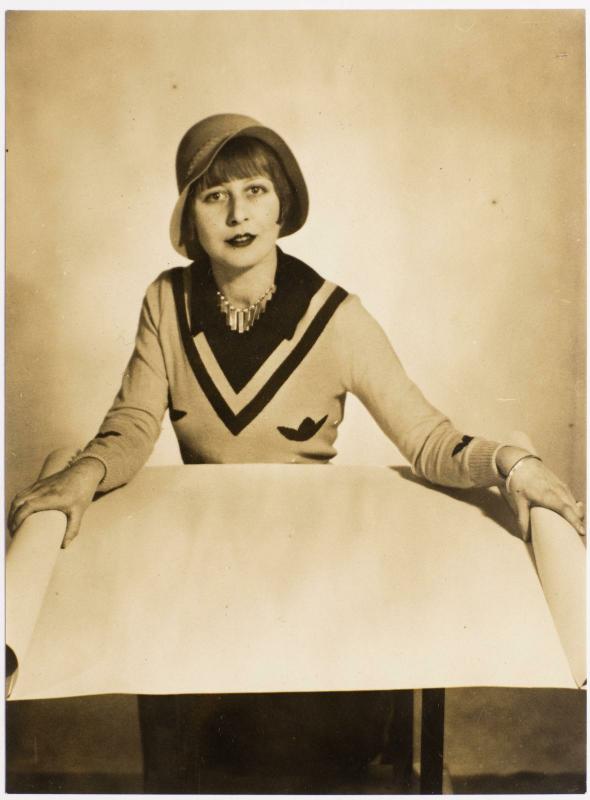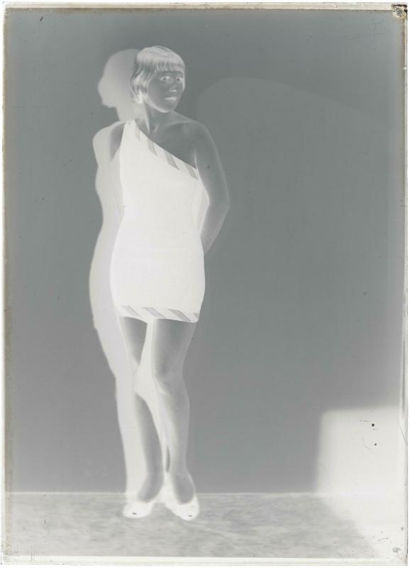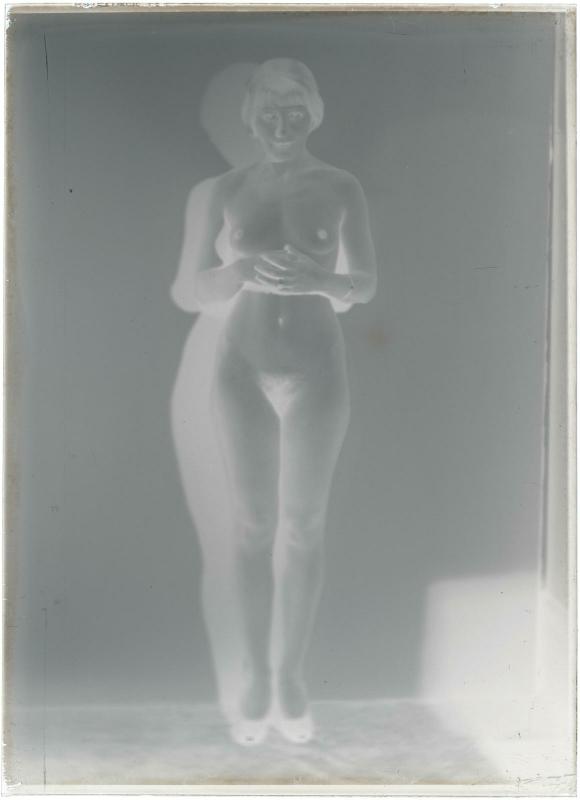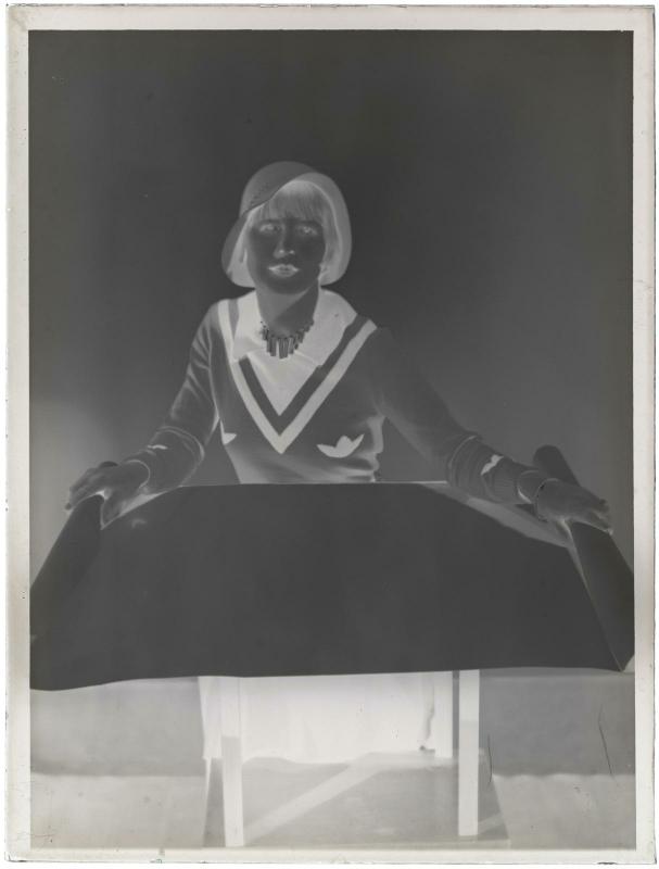 Portrait de femme non identifiée tenant dans les mains un rayogramme