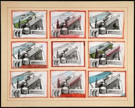 | Descripción | Composition avec des éléments empruntés au cimetière de San Cataldo à Modène, à l’immeuble du Gallaratese à Milan et à la mairie de Scandicci |