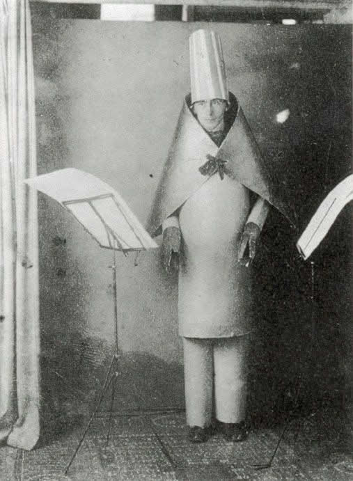 Les « soirées nègres » du Cabaret Voltaire associent performances avant-gardistes et références culturelles africaines et océaniennes. Tristan Tzara publie en 1917 une « Note sur l’art nègre » où il affirme : « du noir puisons la lumière ». Il compose des Poèmes nègres inspirés par des chants rituels liés à des pratiques sociales (mariage, travail agricole). Ces textes, détachés de leur contexte ethnologique, sont performés lors de soirées mêlant récitations, danses et musiques, comme le « Noir cacadou » qui s’inspire des traditions Aranda, peuple d’Australie centrale. Les masques cubo-africains de Janco, les costumes d’inspiration Hopi (peuple amérindien) de Taeuber et les collages de masques africains de Höch incarnent cette hybridation formelle et sont exposés dès 1917 aux côtés d’objets africains à la galerie Corray à Zurich.