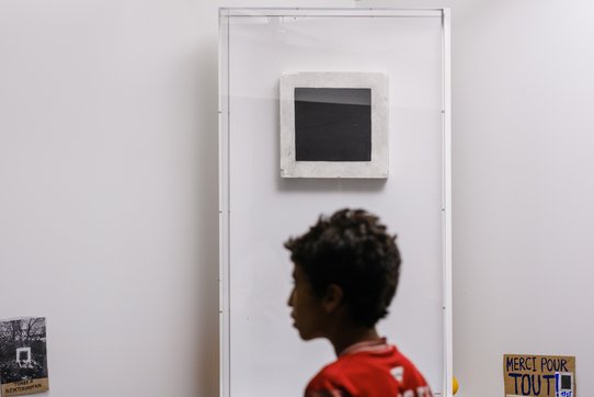 La longueur du côté ouest est occupée par une scène ouverte cristallisant toute l'attention de 10 heures à 22 heures. S'y succèdent acteurs et actrices d'alors, témoins de tous les horizons, afin qu’ils racontent ce qu’était leur musée précaire Albinet, quelles traces il a laissées dans leur vie et dans le quartier. Enfin, dans le coin nord-ouest, trône, en hauteur, le Carré noir de Kasimir Malevitch, iconique et puissamment radical, absent autrefois de la fête car trop fragile, mais prêté pour la journée par le Centre Pompidou (qu’il a rejoint en 1978 pour l’exposition devenue culte « Paris-Moscou », ndlr). Angela Lampe, conservatrice au sein de l’institution parisienne, rappelle à l’unisson avec l’endroit que « ce sont bien les artistes qui portent la société nouvelle » et que l’œuvre suprématiste ne peut trouver meilleure place qu’ici. « On devrait même s’inspirer de cette scénographie à l’avenir », dit-elle, opinant du chef.