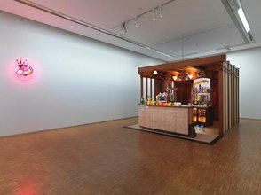| Description | Installation composée d'un canard en résine peint accroché au plafond et encerclé de peinture bleue cobalt ainsi que d'un sol de 10 panneaux de bois assemblés et gravés d’après un dessin de l’artiste. Le sol a été conçu et tâchés de peinture acrylique jaune suite à l’activation de la pièce, le 02 septembre 2025, au Centre Pompidou, lors de la clôture de chantier de l'exposition intitulée "Enormément Bizarre, Collection Jen Chatelus" |