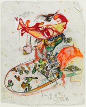 | Technique | Gouache, aquarelle, feutre, crayon-gras, stylo-bille, papier déchiré et enveloppe sur feuille d'imprimante, collée sur papier vélin | |