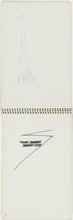 | Fait partie de l'ensemble | Carnet de croquis n° 12 Carnet (Ensemble indissociable) Carnet relié par spirale métallique, couverture en papier. Carnet comportant 63 feuillets dont 15 pages de dessins, 2 pages de notes, 3 pages de dessins et notes et 106 pages vierges. La deuxième de couverture comporte des notes, la troisième de couverture est vierge. [vers 1959] | |