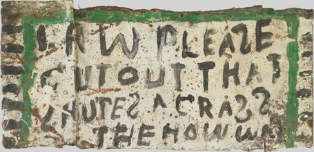 Smith accompagne ses portraits d'inscriptions et de slogans inintelligibles.