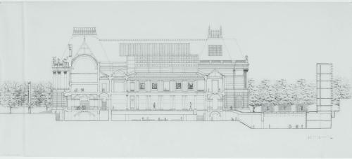 Planche du concours, coupe longitudinale, coupe transversale et façade…